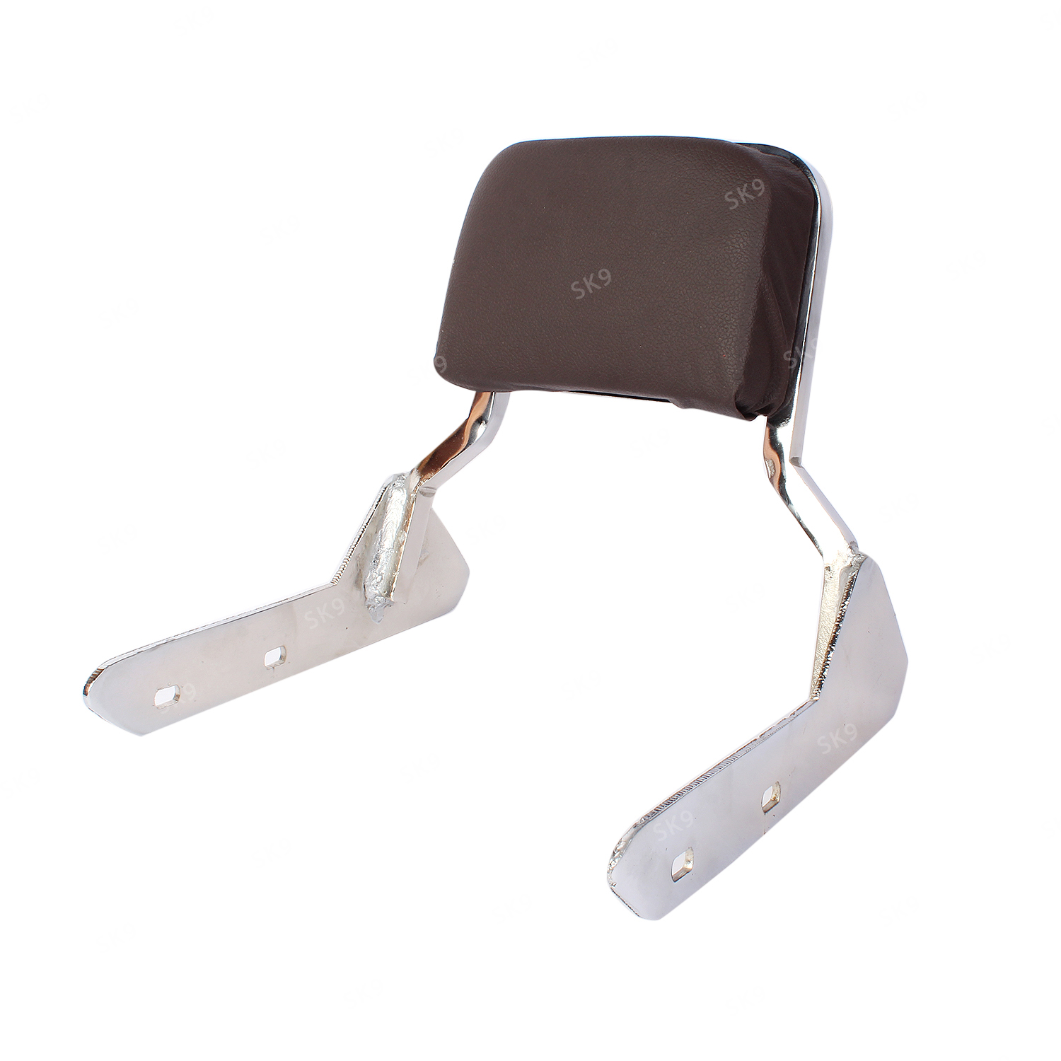 Mach7 Harley Style Backrest – Chrome Finish with Brown Cushion for Royal Enfield Reborn | Pillion Support
